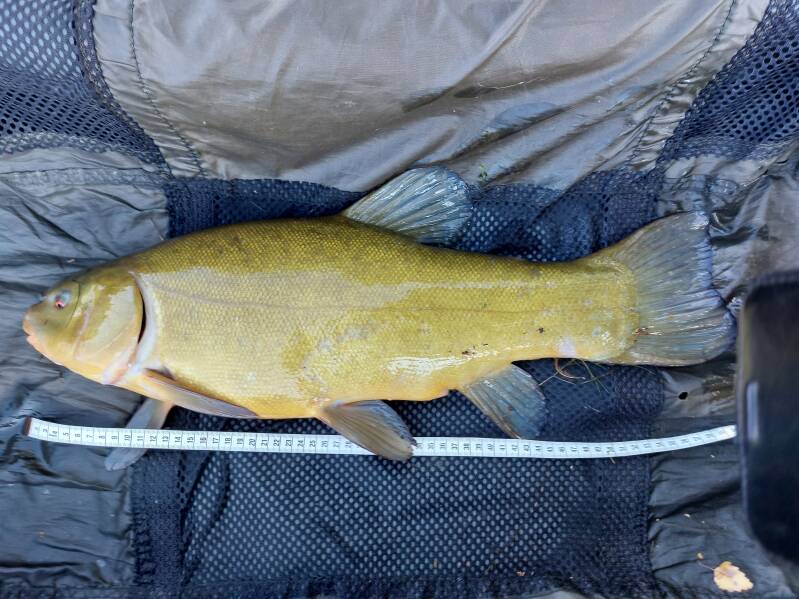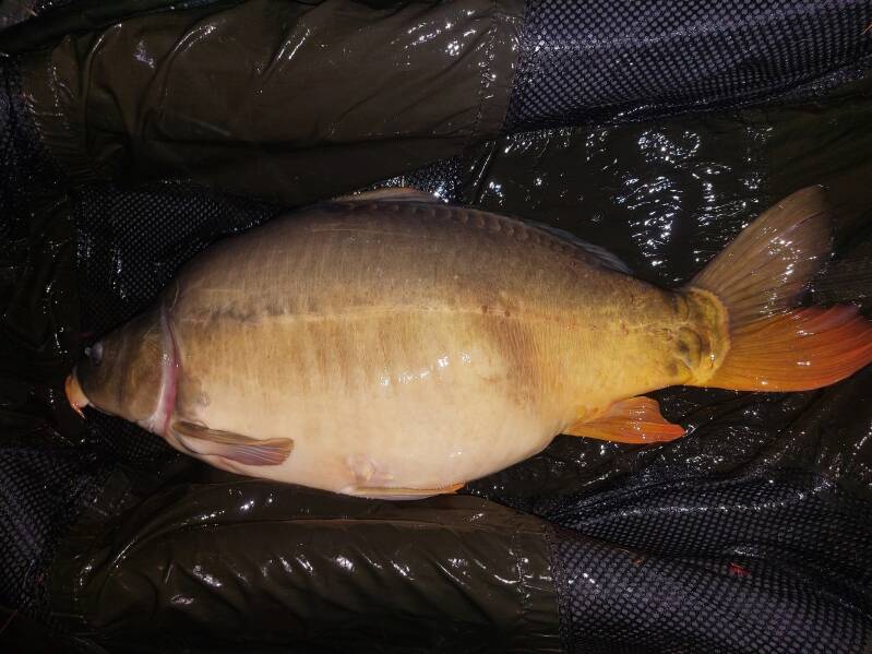 Deze zeelt was de grootste van drie vissen in een nacht. Ja, de andere twee waren karper(tjes).