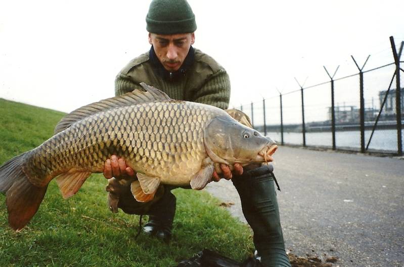 In juni vis ik samen met Kaj en Rolf een nacht tegenover de derde haven. Het resultaat bij Rolf en mijzelf is niet slecht maar Kaj wil niet luisteren naar mijn advies om zijn hair met partikels anders te bevestigen. Door mijn ervaring weet ik dat je veel losschieters krijgt met mais op de hair (zie ook seizoen 1992) hetgeen ook blijkt. Op vier runs heeft Kaj evenzoveel losschieters maar hij blijft trouw aan zijn montage. Mijn grootste vis hier is 80 cm en weegt wel 14 pond. Een echte torpedo en karakteristiek voor dit polderwater. Een vis uit een serie van 18 in drie weken.