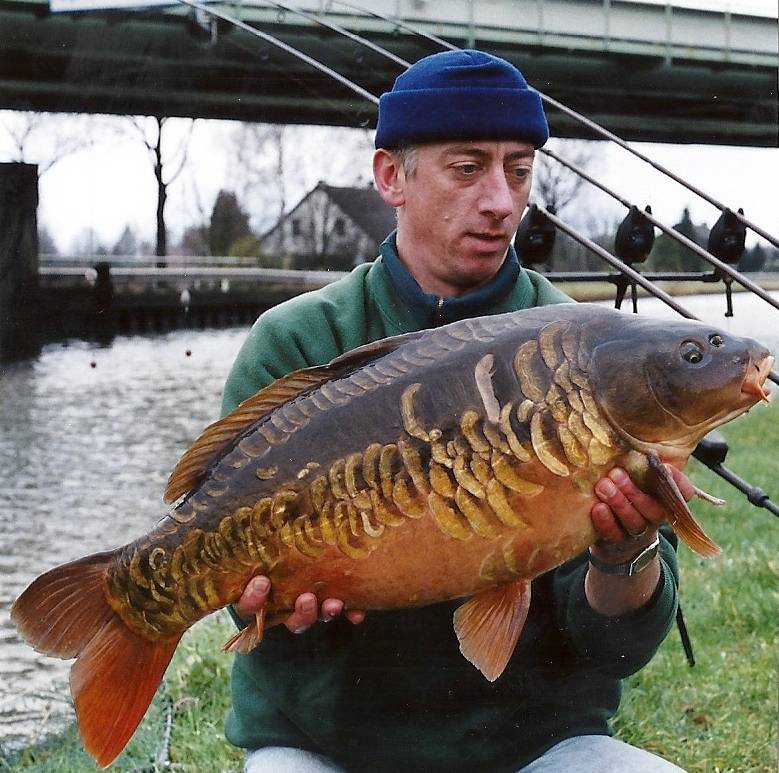 Ander nieuws is dat de geruchtenveertiger inmiddels geen geruchtenveertiger meer is. Het lijkt de vis van Serge te zijn en is overduidelijk zwaarder dan veertig pond. De vanger had nu (de derde keer dat ik hem zag) wél zijn foto’s bij zich en liet ze graag zien. Hij vertelde dat hij de vis vorig jaar rond deze tijd had gevangen op de stek bij het hek. De foto’s bevestigden zijn verhaal. De reden dat hij hier nog steeds viste, ondanks zijn beduidend slechtere vangsten, was dat het zijn eerste vis was tijdens zijn eerste sessie hier op het kanaal. Sommige mensen hebben echt een partij megageluk. Toch gaat mijn resultaat komen, ik voel het gewoon.