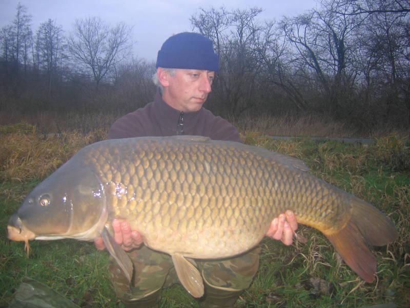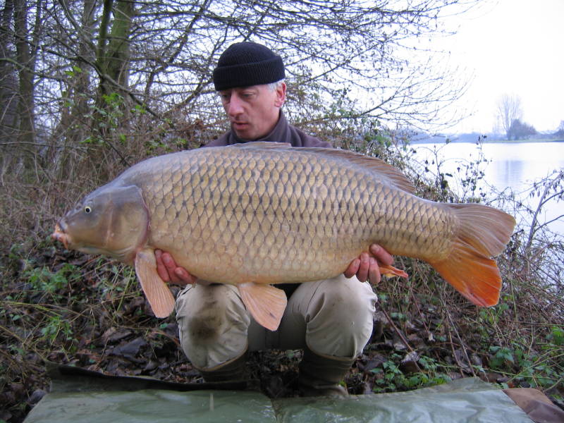 Mijn eerste vis van het jaar wordt inderdaad een dertiger. Ik vis de nacht van 5 op 6 januari op de Eddy stek. Mijn voorkeursstekken zijn namelijk beiden bezet en ik besluit zoveel mogelijk uit de drukte te blijven. Dat betekent ofwel de Eddy stek, ofwel in het bos op de stek van Carlo. Ik kies voor de eerste. Om vier uur liggen de hengels in het water en binnen twee uur vang ik op mijn rechter hengel een platte. Om tien voor negen krijg ik een aarzelende beet op mijn linker hengel en dat blijkt karper. Na een vrij rustige dril, de vis komt een heel stuk