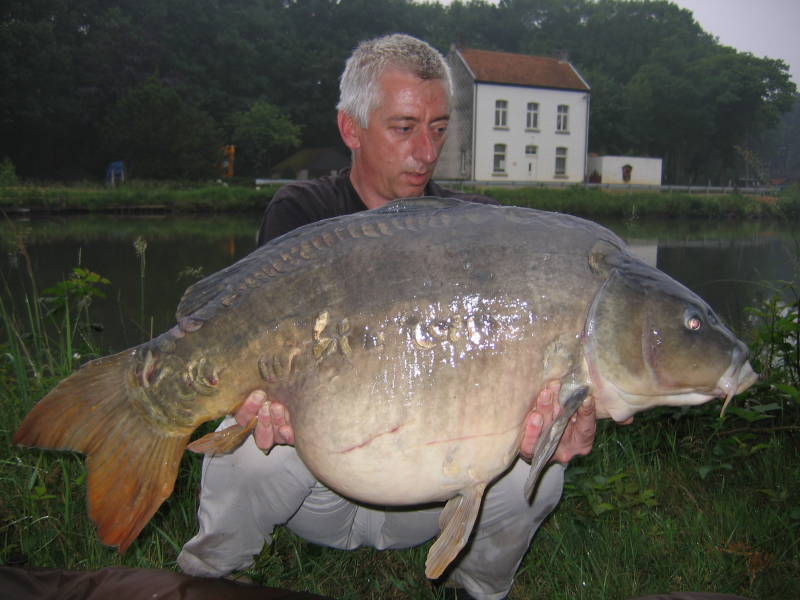Zaterdagochtend staat alles kant en klaar in de garage. Een foedraal met 6 hengels (één voor Brian en een peilhengel), mijn rugzak, de etenskist, een koelbox, stretcher, stoel, voerboot, tent, staafmarkers, pellets, blikmaïs, hennep en tijgernoten, vismeelmix, eten en drinken, slippers, waadbroek, kleding, kookgerei en heel veel batterijen. Inmiddels heeft Marian al ingestemd dat we eerder vertrekken dan de geplande 04.00 uur ’s nachts. We slapen tóch niet voor die tijd dus met een beetje mazzel winnen we een uur of 5. We zijn er zo verschrikkelijk mee bezig geweest de afgelopen weken dat de spanning voelbaar is. Brian heeft gisteren nog ruim 55 kilo boilies gehaald bij Pluckers en nog wat drijvende bollen erbij. De zaterdag verloopt traag. Eerst moeten we nog naar twee verjaardagen. Een bij de buren en een bij Tommie, de broer van Marian. Ondertussen zit Brian nog aan een dinertje in Leende. Ik verwacht dat hij zo rond half tien bij me op de stoep staat en daarom ga ik ook niet mee naar de verjaardag van Tommie, maar dat valt tegen. Pas tegen kwart voor elf draait hij de straat in en om elf uur zijn we pas echt onderweg. Aan het einde van de dag is het dan eindelijk zover, we zijn vertrokken voor een week Frankrijk. Als het een beetje wil kunnen we zo’n 140 uur onafgebroken vissen op een water waar al vissen tot net over de 30 kilo zijn gevangen en dat verder nog enkele 40-ers en 50-ers herbergt. Klinkt toch niet slecht, wel? Ons reisdoel ligt ongeveer halverwege de Route de Soleil op 7 uur rijden van Brabant. Als alles goed gaat, zijn we met dagaanbreken daar. ’s Ochtends om 07.30 staan we aan het water. We lopen een rondje nadat we door enkele snoekvissers door de poort zijn gelaten. Eerst komen we nog enkele Hollandse bekenden tegen die ook op het Kempisch kanaal vissen en die een dag eerder zijn gearriveerd. Ze hebben nog niks. We komen aan op de stek van onze keuze en terwijl Brian zich bezighoudt met het inrichten van ons kampement, trek ik erop uit om vergunningen te halen. De eerste Bar Tabac heeft er geen meer. “Shit!” De vriendelijke barvrouw wijst me de weg naar een dorp verderop waar ze ook vergunningen verkopen. Ook daar krijg ik nul op rekest en wordt ik langzaam zenuwachtig. “O, fuck maak me niet gek!” Pas bij de derde poging, weer een dorp verder, is het raak en kan ik de laatste 2 Cartes de Vacances kopen. Pffff, een zucht van verlichting. Dan zijn ze ook in de derde winkel écht op. We hebben de allerlaatste vergunningen uit de regio. Ondertussen is Brian nog iets verder opgeschoven naar de rechtse kant van het water richting de dam. Fransen hebben daar vlak voor het inpakken een spiegeltje gevangen. Wij krijgen op die stek ook direct actie van de poisson chat. Alijn zegt in zijn boek: katvis = kutvis” en dat merken we ook. De hele tijd (ook in de nacht die volgt) krijgen we enkele piepen, vierkante boilies, ‘n kale hair of zelfgehaakte dwergmeervalletjes. De volgende dag zijn we het dus snel eens. Hier blijven we niet. We rekenen de camping af en rijden naar Longeville en Lac de Vorgey. Het is het laatste water waar we besluiten twee nachten te verblijven. Héél blauw water in een grindbak van zo’n 4 meter diep en als het goed is een bestand met enkele hele mooie vissen. Om half vijf gaan de hengels erin en 3 uur later heeft Brian zijn eerste run. Die resulteert in een spiegeltje met een moddervette pens. Ondanks de korte lengte komt het visje toch zeker zo rond de tien kilo uit. Ik heb in de tussentijd met pellets en particles een emmer vol grondvoer gemaakt dat ik al zwemmend aan de achterzijde van een eiland deponeer. Het water is maar achttien graden en dat voel je. Even later sta ik mezelf, voldaan door de actie, met een klein blauw pieleke af te drogen achter de auto. Het water was écht koud! Om vijf voor twaalf staat de stand gelijk en heb ook ik een spiegeltje van 21 pond te pakken. Inmiddels is het mooie weer veranderd en regent het. Dat doet het nog steeds als ik om half twee weer een run krijg. Deze vis voelt iets beter en dat blijkt ook tijdens het wegen. Met 13,1 kilo ben ik al aardig tevreden. Hij gaat de zak in omdat ik er foto’s van wil hebben en tegelijkertijd wil zien wat er aan verteerd voedsel achterblijft. Om zes uur vang ik een schubje van een kilo of vijf en anderhalf uur later los ik er ook nog eentje. In elk geval actie genoeg. Overdag gebeurt er weinig totdat Brian een schaduw ziet onder de toppen van zijn hengels. Het blijkt een spiegel van een mooi formaat die op zijn kop de bodem afspeurt naar wat eetbaars. Brian trekt zijn middelste hengel terug en voert enkele boilies bij. Hij blijft op enkele meters achter zijn hengel zitten en kijkt naar wat er gebeurt. Even later zie ik hem omhoog springen en zij hengel oppakken. Die vliegt meteen krom en na een korte strijd glijdt er een spiegel van 16 kilo over de netrand. Good angling, zouden de Engelsen zeggen. Later lost hij nog een mid-twintiger en vangt hij nog een vis van 12 kilo. Bij mij loopt om kwart over drie mijn rechtse hengel af en vang ik een spiegeltje van een pond of 11. Brian heeft ook nog twee knollen gevangen en hij heeft het ook op deze put helemaal gehad. Het zit allemaal niet mee deze sessie. Eerst hoge verwachtingen op Cormoranche en veel attentie van katvis. Daarna veel geruchten over een goed bestand op dit knollenwater. Het wordt tijd voor een goed plan de campagne. Wederom staat het voor ons vast. Hier blijven we ook niet. Ook de geluiden van Cormoranche maken dat we geen illusie hebben om daar naartoe terug te keren want Pierre en John hebben na vier nachten nog steeds geen vis daar. Om negen uur gaan de hengels eruit en om tien uur zijn we weer onderweg. We rijden naar Courcelles waar het meer van Trelou sur Marne ligt. Hier komen we rond de klok van drie uur ’s middags aan en zien tot ons ongeloof dat er een Enduro gepland staat voor vrijdag. Daar komen we dus ook niet tussen en het lijkt erop dat deze sessie écht gedoemd is te mislukken. 