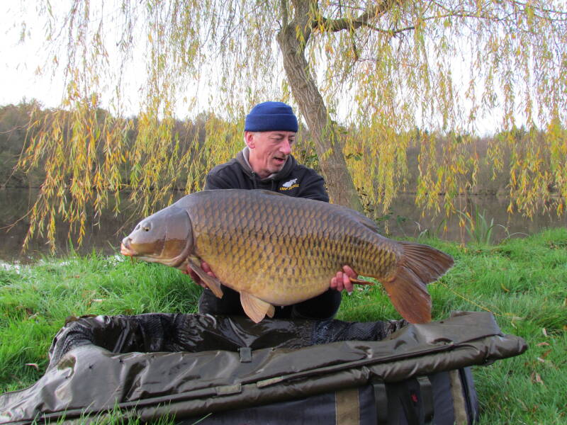 Dinsdag de twaalfde, gaat het eens van een leien dakje. Om zeven uur liggen mijn hengels erin. Ik heb spaarzaam en goed verspreid bijgevoerd en dat betaalt zich na 25 minuten al uit met mijn eerste run van de avond op mijn rechter hengel. Helaas schiet de vis na een seconde of tien los. Heb ik te hard gedrild, of was de vis niet goed gehaakt? Om klokslag acht, gaat dezelfde hengel ervandoor terwijl ik met Bjorn aan de telefoon zit. Hij doet mee aan de WCC op Madine. Ik gooi mijn telefoon op de onthaakmat en dril een niet al te hard vechtende vis. Een Chinees. Ik dril hem helemaal uit en onthaak hem in het water. Als ik er een nieuwe bol aan wil hangen, hoor ik achter me mijn andere hengel aflopen. Na een minuut of vijf ligt er een mooie spiegel in het net. Een brede rug, maar voor dertig pond een beetje te kort. Toch doe ik het voor drie pond minder. Om negen uur krijg ik nog een aanbeet. Het is al helemaal donker en ik zit niet echt meer op mijn gemak. Ik besluit na deze vis in te gaan pakken, want nachtvissen is hier verboden. Ook deze komt op de kant en mag op de foto. Weer een spiegel en weer een twintiger. Misschien vrijdag maar eens een dagsessie draaien hier, want de vis ligt goed op het voer. Met vier runs in twee uur tijd, mag ik zeker niet klagen.