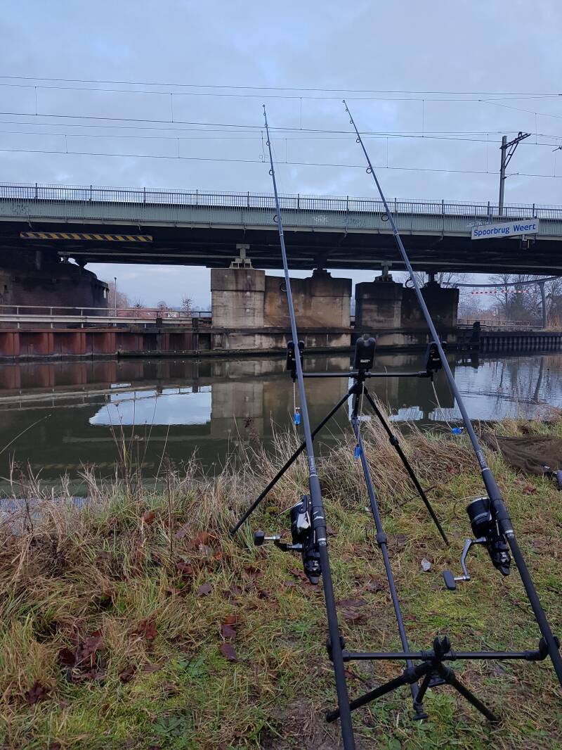 Zaterdag twee januari. In de ochtend zit ik op zolder achter mijn computer en bekijk wat watertjes op Google Earth. Het wakkert mijn visvirus nog wat verder aan en ik besluit spontaan om een nachtje te gaan doen. Sessie twee komt dus eerder dan verwacht. Waarom ook niet? Ik tuig eerst de kerstboom af en help met opruimen en poetsen thuis, voordat ik de auto inlaad en halverwege de middag naar het water rijd. Het afvoerkanaaltje is de plek waar ik het eerst ga kijken, maar het water is er bruin en er ligt een boot met roofvissers op de stroomnaad van de Maas. Gelukkig had ik al een alternatief bedacht bij de Schoorbrug, een stek die me in de winter al vaker vis heeft opgeleverd ‘s nachts. Half vijf liggen er drie hengels op scherp. Op mijn computer heb ik gezien dat de vaargeul op deze plek bijna een meter dieper is dan op andere delen van het kanaal en dat kan wel eens een belangrijke troef blijken. Een hinged stiff rig gaat met een pop-up naar mijn zijde van de vaargeul en de andere hengels gaan naar links en rechts achter de keitjes. Of het iets gaat opleveren weet ik niet. De omstandigheden zijn niet geweldig want het is droog en windstil. Best aangenaam met mijn kachel bovenop de dijk. Ik trek een biertje open, een Brigand, en proost met mezelf op een nieuw visjaar. Bjorn belt me om me een gelukkig nieuwjaar te wensen.