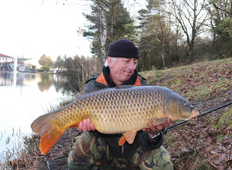 Ik ga toch een nachtje op 23 december. Een telefoontje met Kevin, wijst me de weg naar een klein putje in Eindhoven. Daar mag je nachtvissen en zit je ook nog eens rustig. Ik besluit het eens een nachtje aan te zien. De band van mijn barrow is wat aan de zachte kant, merk ik, als ik naar de stek loop. Om vier uur heb ik met de voerboot twee lijntjes uitgevaren, stijf tegen de eilandjes aan. Bij het linker eiland een Ronny-rig met een Crab Goo pop-upje en tegen het rechter eiland een Scopex boilie op de bodem. Het is de eerstgenoemde die ’s ochtends om half zes een aanbeet verraadt en me het kleinste visje van het jaar oplevert. Ik mopper niet want vis is vis, maar dit is wel echt klein. Ik merk ook dat een putje zoals ik afgelopen nacht bevist heb, toch niet helemaal mijn ding is. Als ik enkele uurtjes later weer met een slappe band terug loop naar de auto, bedenk ik mezelf dat de laatste sessie van het jaar, waarschijnlijk een dagsessie gaat worden. Ik denk dat ik dan een dag ga doorbrengen aan de IJzeren man.