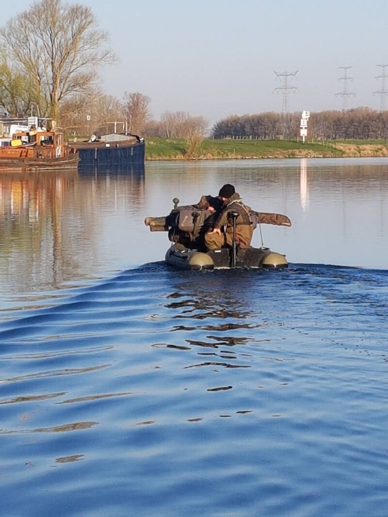 Woensdag ga ik er samen met Bjorn eens kijken. Hij heeft zijn rubberboot en zijn dieptemeter meegenomen. Hij loopt wat moeilijk omdat hij een middenvoetsbeentje heeft gescheurd, maar hij klaagt niet. Er moet verkend worden! Alleen boven een gat dat zo’n 80 meter uit de kant ligt, vinden we een grote school vis, maar we vinden er weinig tekenen van karper. Om de bocht vinden we wel een heel mooi voorjaarstalud met dieptes van 2-3 meter en eromheen aflopend tot 7 aan de linkerkant en 10 rechts. Toch besluiten we dat het op de ingang niet te doen is deze week. We kijken nog even aan het kanaal en Bjorn gaat morgen nog naar een andere stek kijken. De volgende dag luidt het oordeel dat het gat waar hij is geweest, niet te bereiken is zonder boot. Na de hoge waterstand is het té drassig in de weilanden en met een zware kar zéker niet te doen. Het zal dus toch een nachtje kanaal worden. Mijn gok is dat we ergens tussen de varkensboer en de grote paaibak uit gaan komen. Ik maak een mixje van gemalen boilies, particles en sweetcorn en overgiet die met twee liquids. Ik heb ook enkele funnelwebjes in dezelfde vloeistoffen gesoakt en hoop met weinig aas en veel attractie wat actie af te dwingen. Vrijdagmiddag ga ik eerst even met Marianne naar de kaakchirurg. Ze heeft een ontsteking aan haar kaak en die moet even open. Daarna ga ik thuis de auto inpakken en naar het water. Eerst rijd ik langs Max om voor Bjorn een nachtvispas op te halen en daarna zoek ik een stekje. Bjorn belt rond drie uur dat ook hij onderweg is en ik besluit te wachten met uitvaren tot hij er is. Even overleggen wie aan welke kant gaat zitten. Nadat we besloten hebben dat ik links en hij rechts zit bouwen we onze stekken op en varen de hengels uit met mijn voerboot. In de avond drinken we zoals afgesproken wat speciaal biertjes. Na de laatste merken we wél dat vier van die jongens, toch wat te veel is. Volgende keer nemen we er dus maar twee mee, want we praten met dubbele tong en liggen op tijd in het nest. Ik ben al erg vroeg wakker en erger me aan het geluid van de snelweg. Ik kijk een Netflix filmpje en drink koffie totdat Bjorn ook wakker is. Het gaat niet gebeuren vandaag. We schrijven allebei een blank en dat is niet raar met drie graden vorst. Volgende week beter. Een mooie depressie zou qua weertype bijzonder welkom zijn, maar daar ziet het niet naar uit.