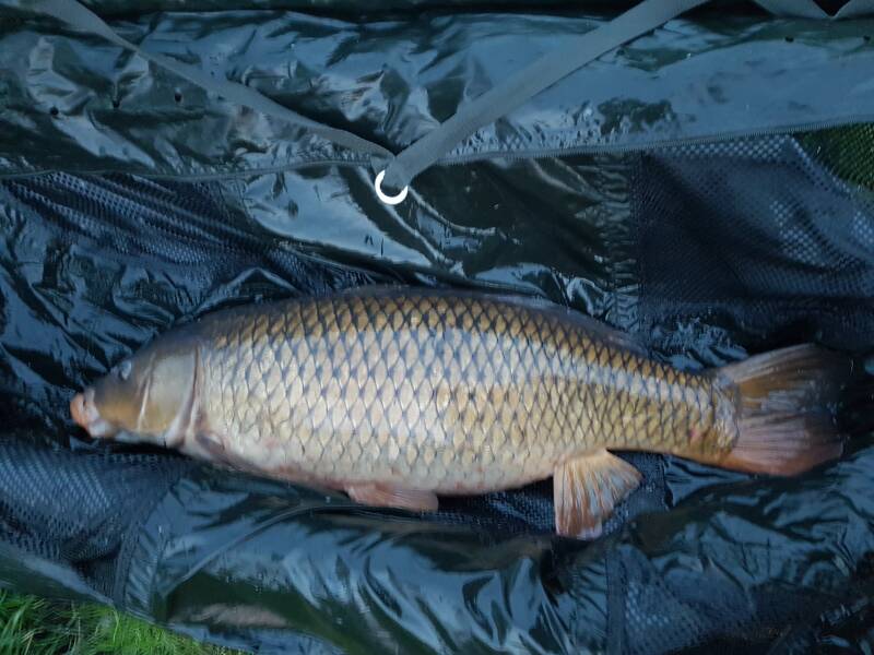 Tijdens de laatste voerbeurt ontdek ik een busje aan de overkant van het kanaal. Of hij aan het voeren is weet ik niet zeker, maar het zit me toch niet lekker. Donderdag ben ik om kwart voor vijf aan het water. Er zit in elk geval niemand en ik bouw snel mijn kamp op. Vijf uur liggen de hengels erin en binnen het uur fluit de eerste al aan. Ik moet het gas onder mijn eten even uitzetten, maar met een dergelijke snelle actie heb ik dat er graag voor over. Een schubje met een markante plek op zijn flank mag even poseren en ook snel weer terug. Hopelijk is dit een voorbode van meer. Dat gebeurt in elk geval niet snel, want als ik om elf uur ga slapen is er niets meer gebeurd.