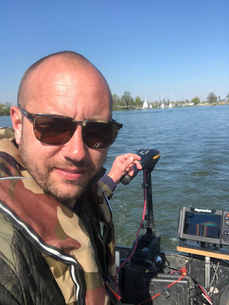De wind wakkert nóg verder aan en ik druk de poten van mijn rodpod nog wat beter in de bodem. De golven worden steeds hoger en het lijkt een beetje op “pootje baden in zee”, als je in het water staat. Als ik tijdens een biertje achter de paraplu, uit de wind en in de zon, ineens een aantal piepen ontvang op mijn sounder box, blijkt de hele santenkraam tóch te zijn omgewaaid. Twee van de drie Delkims protesteren luidkeels tegen het onvrijwillige bad en ik kan ze ook niet meer stil krijgen. Dat betekent een vroegtijdig einde aan deze sessie. Bjorn besluit eveneens in te pakken, ook omdat de komende nacht veel neerslag wordt voorspeld en de wind aanhoudt. Met de staart tussen de benen, pak ik in en vaar terug naar de haven. Tegen de wind in, is dat nog een hele opgave met een volle boot, maar uiteindelijk staan we toch weer heelhuids in de thuishaven. Vangstgewijs is het dus wederom geen hoogtepunt geweest deze sessie. Het is een taai voorjaar, maar uiteindelijk ben ik taaier, dat weet ik zéker. Komende week zal ik nog best ergens een nachtje kunnen vissen, maar begint ook de voorbereiding voor het verbouwen van de benedenverdieping thuis. Ik ga het dus vermoedelijk maar even wat dichter bij huis zoeken de komende weken. Verandering van omgeving hoeft niet slecht te zijn.