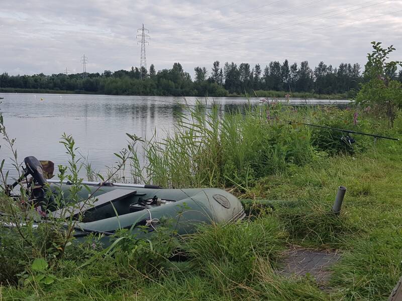 Het weekend erna trek ik de visloze periode nog maar een stukje verder door. Ik ga op de bonnefooi naar de Zuidplas. Eigenlijk had ik naar de tentenmanstek gewild, maar het heeft de afgelopen dagen behoorlijk geregend en daardoor stroomt de Maas te hard om zorgvuldig en scherp te kunnen vissen. Ik rijd al vroeg weg thuis, omdat ik een ouwelullendag heb en de hele ochtend en begin van de middag heb lopen klussen. Omdat er nog een paar pittige buien zijn aangekondigd, maar ook een droge periode rond de klok van half drie, wil ik proberen om dan aan het water te staan. Dan heb ik een beetje tijd om de boot droog op te kunnen pompen en over te varen naar de stek. Dat lukt prima en om half vijf liggen de hengels erin. De dode boom die twee weken geleden tussen Bjorn en mij in het water lag, is verdwenen. Mooi want dan kan ik prima vissen hier. Het is fris, maar gelukkig heb ik mijn kachel bij me. Best behaaglijk, totdat om tien uur het gas op is. Fuck, ik dacht dat de fles nog half vol was, maar daar heb ik me dus in vergist. De omstandigheden zijn niet best. Er waait een hele zure wind uit het zuidwesten, het is volle maan en de barometer stijgt van onder de 1000 Mbar, naar boven de 1015 deze nacht. Er gebeurt dan ook de hele nacht niks en als ik de hengels binnen draai, zie ik nóg twee mogelijke redenen. Aan mijn rechter haak, hangt een zebramossel en bij de linker montage is de boilie verdwenen, nét als de stopper, en bovendien is het rubbertje opgeschoven naar het haakoog. Waarschijnlijk dus tóch een karper aanbeet gehad, die met kopschudden heeft weten te ontsnappen. Geen goede sessie dus. Hopelijk vang ik in oktober nog een visje, maar momenteel zou ik niet weten waar.