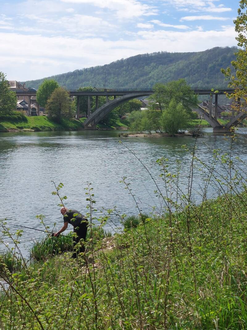 Op vier mei, de dag van de dodenherdenking, rijd ik naar Frankrijk. In de ochtend heb ik nog gewerkt, maar daarna is het tijd voor een boterham en “gas op die lolly.” Iets na drieën ben ik op locatie. Rolf zit er al en we zijn allebei van mening dat we op een mooie stek zitten met goede onderbrekingen van het monotone. Een gemaal, een sluisje en een eiland liggen vlak bij een brug. De stroming maakt dat we elk met twee hengels vissen. Als ik die van mij heb weggelegd en er met de spod wat bij voer, slaat de gevlochten lijn om mijn wijsvinger, met een goede snee helemaal rondom als gevolg. Pleister, toch maar de vingerhandschoen aan en weer door met voeren. Even later zitten we aan een biertje. We zien regelmatig witvis draaien, maar van karper geen teken. Een geweldige stek, maar waar zit de karper? We besluiten het vannacht aan te zien en morgen te verkassen als actie uitblijft. Omdat we allebei best moe zijn na de eerste dag, kruipen we er op tijd in. Als ik om vier uur wakker word voor een sanitaire stop, ligt alles er nog heel stil en rustig bij. Niet erg hoopgevend zeg maar. Omdat we al bedacht hadden om te verkassen als het weinig of niks zou zijn, ligt even na acht uur alles in de auto. We hebben op de kaart wat stekken bekeken en rijden daarheen. Pas op de derde stek bij Chooz vinden we een plek die ons aanstaat. We gooien wat rond om de bodem wat af te tasten en ik vaar een rondje met de voerboot voor de dieptes en om te zien of er obstakels liggen onder water. Dat valt allemaal positief uit dus om tien uur liggen de hengels erin. We zien best veel witvis draaien in de kantzones en dat stemt ons hoopvol. Rolf bakt worstenbroodjes tussen de middag voor de lunch en die zijn heerlijk. Daarna nog twee hamburgers en dan is het buikje vol. We spoelen de lunch weg met enkele biertjes en genieten van het landschap. ‘s Avonds komt een voorbijganger een praatje maken en laat ons wat foto’s zien van grote meerval en ook flinke karpers. Ook deze stek zal helaas niks opleveren, behalve een stokbrood. De voorbijganger van gisterenavond komt ons in de ochtend een vers stokbrood brengen. Het is zelfs nog warm. Ongelooflijk aardig van hem. We pakken in en rijden elk ons weegs. Rolf rijdt naar huis en ik naar een Frans Lac waar ik een nieuwe stek ga bevissen met een andere tactiek. De route erheen is waardeloos. Eerst moet ik een stukje terug door België, onder andere via Chimay maar het is nog te vroeg voor een biertje, en dan volledig binnendoor naar mijn bestemming. De reis van 135 kilometer duurt meer dan twee uur. Ik ben echt blij als ik arriveer.