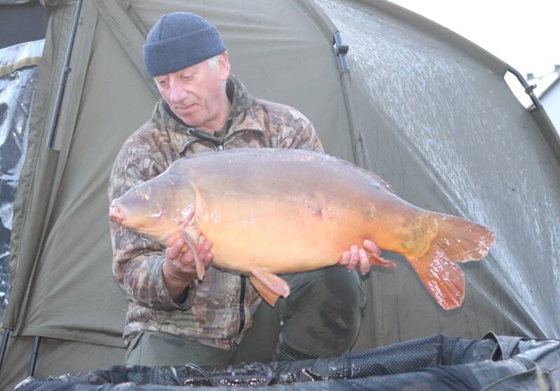 Woensdag kom ik iets na zessen thuis. We hebben vandaag en gisteren een Cyberoefening gehouden op het werk en ik merk dat ik daar best moe van ben. Tevreden ook want we hebben mooie resultaten neergezet. Ik kleed me om, bel nog even met Marianne en pak daarna de auto in voor een tweedaagse sessie aan het kanaal, waar ik al drie weken met enige regelmaat aan het voeren ben. Ik eet een frietje bij mijn lokale cafetaria en rijd door naar mijn stek die ik nu al drie weken met enige regelmaat onderhouden heb. Om acht uur liggen de hengels erin en om half elf vang ik mijn eerste vis van de sessie. Of het door de gedaalde watertemperatuur komt weet ik niet, maar de vis komt redelijk makkelijk mee. Een kantenknuffelaar die de hele dril aan eigen zijde tegen de beschoeiing aan blijft tegenspartelen. Het net kan eronder en ik land een schub van net geen 12 kilo. Mooi als er al zo snel vis op de kant ligt. De hengel wordt daarna snel terug gelegd en ik voer er een handje boilies omheen. Ook de andere hengel wordt opnieuw ingelegd en dan is het werk weer gedaan. Eens kijken of er vannacht nog wat bij komt. En dat komt er, want om tien voor vijf krijg ik een aanbeet op de hengel in de vaargeul. Veel zenuwachtig geschud en ik denk aan wederom een kleiner exemplaar. Totdat het kleintje ineens uitgroeit tot een beste dertiger als hij het net in gaat. Hij is zelfs een heel stuk groter dan zijn voorganger want met 92 centimeter en een goeie 19,6 kilo is dit een kasteel van een schub. Ik hang hem weg in de sling, beaas mijn hengel opnieuw en leg de stok terug. Wat een gave vis weer. Als ik klaar ben is het inmiddels bijna half zes dus wordt het tijd voor koffie. De wereld begint ook langzaam tot leven te komen merk ik aan het aantal auto’s en fietsers aan de overkant van het kanaal. Werklui die op tijd aan de slag moeten of forenzen met een langere reis voor de boeg. Op zulke momenten realiseer ik mezelf wat een bevoorrecht mens ik ben met mijn koffie in mijn tentje en een werkgever die me sinds drie jaar, twaalf “ouwelullendagen” per jaar cadeau doet bovenop mijn toch al riante verlof. Half november en de teller staat op 96 karpers. Nog vier te gaan voor een Century. Dat moet kunnen als de vissen en het weer een beetje meewerken. Na de koffie voer ik nog een paar handjes boilies stuk voor stuk en heel verspreid over mijn visgebied. De vis staat goed op de foto en mag deel uit gaan maken van een imposante reeks vissen in mijn album. Eigenlijk verwacht ik overdag ook nog wel een aanbeet, maar als ik ‘avonds op mijn stretcher een filmpje lig te kijken is er geen actie geweest. Om negen uur positioneer ik de hengels nog een keer opnieuw voordat ik de nacht in ga. Ik vertrouw er nog steeds op dat er wel vis gaat bijkomen, maar de wind die gisteren warm aanvoelde is nu gedraaid naar noordoost en voelt dun. De omstandigheden zijn dus een stuk minder, maar de locatie klopt en er is zoals gezegd al weken af en toe wat voer ingegaan. Morgenochtend weet ik het. Half elf doe ik het licht uit en ga ik slapen. Om vijf uur in de ochtend word ik wakker. Het is doodkalm en als ik buiten kom zie ik dat de natuur ook helemaal stil ligt. Het is wat mistig en windstil. Er beweegt niks, geen geluid te horen en het is alsof er iemand op de pauzeknop heeft gedrukt. Het is slechts 4 graden, maar door het ontbreken van de wind voelt het niet echt koud. Eigenlijk ben ik verbaasd dat onder deze omstandigheden de barometer 1017 aangeeft. Ik ga koffie zetten, maar dit is koffie uit wanhoop en niet omdat ik een goed gevoel heb over het verdere verloop van de sessie. Zolang mijn aas in het water ligt maak ik een kans, maar daar ziet het niet naar uit nu. Een uurtje later komt het leven weer op gang. Vrijdagochtend en dus de laatste dag van de werkweek voor veel mensen. Ik drink koffie en eet mijn bananenbrood op en daar blijft het bij. Rond negen uur begin ik met inpakken. Het ziet er niet naar uit dat er nog iets gaat gebeuren, dus breek ik de sessie af. Doel voor de laatste weken van het jaar is om nog vier vissen bij te vangen om het jaar met 100 vissen af te sluiten. De weersomstandigheden, mijn stekkeuze, tactiek en mijn aaskeuze zullen van grote invloed zijn of dat gaat lukken.
